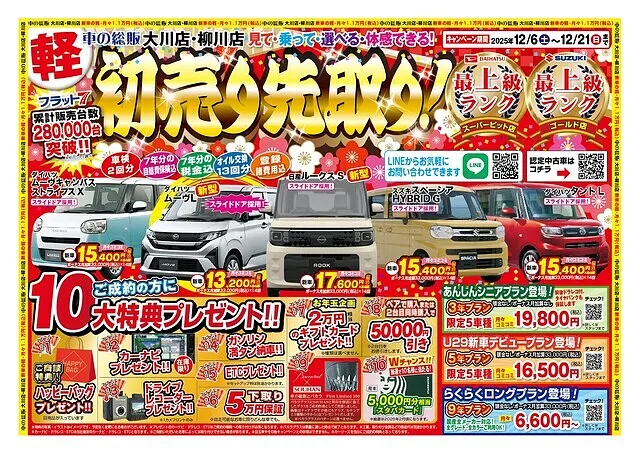 初売り先取りフェアを開催!車の総販の初売りは超豪華!