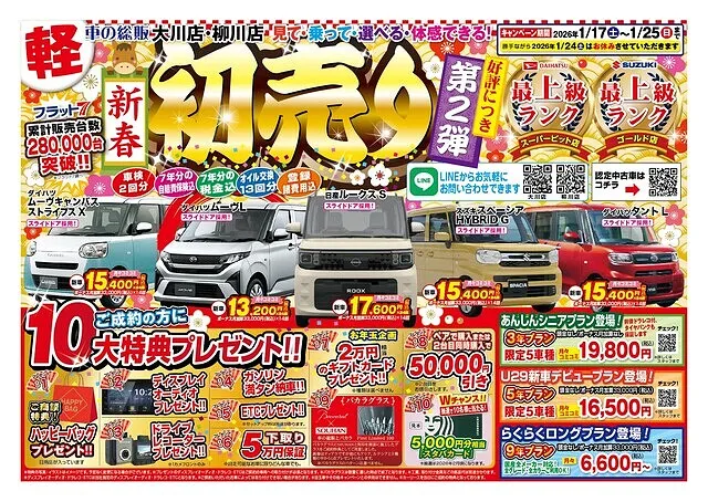 初売りフェアを開催!車の総販の初売りは超豪華!