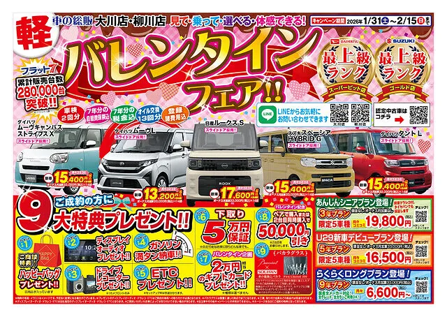 例えば「下取り5万円保証」や、「2台同時購入で5万円引き」といった特典は、ご家族やご友人との来店にもぴったり。