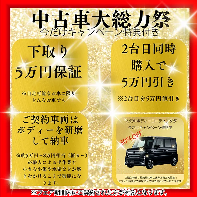 また、「2台同時購入で5万円引き」といった嬉しいサービスは、
