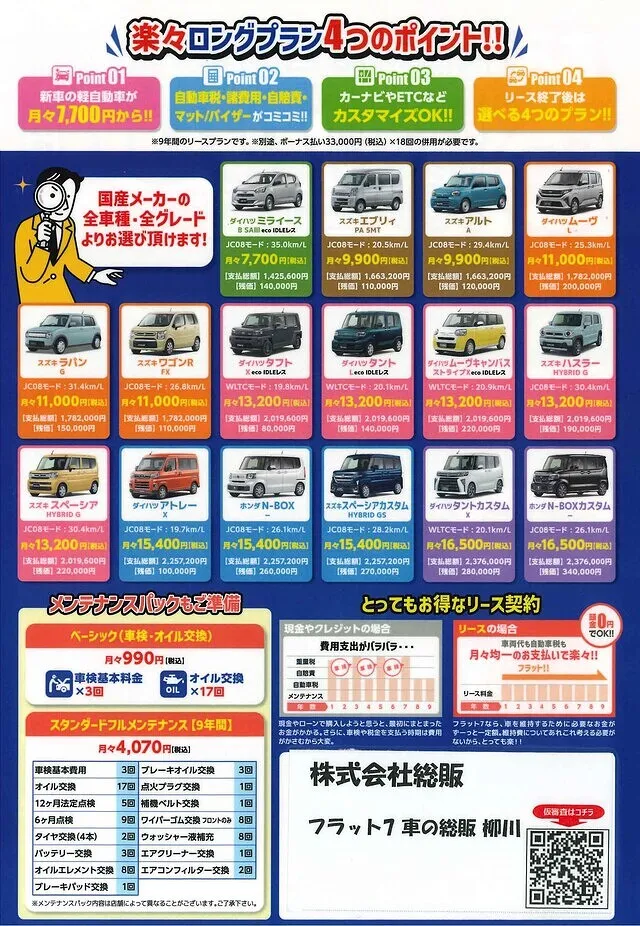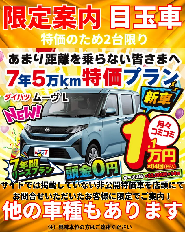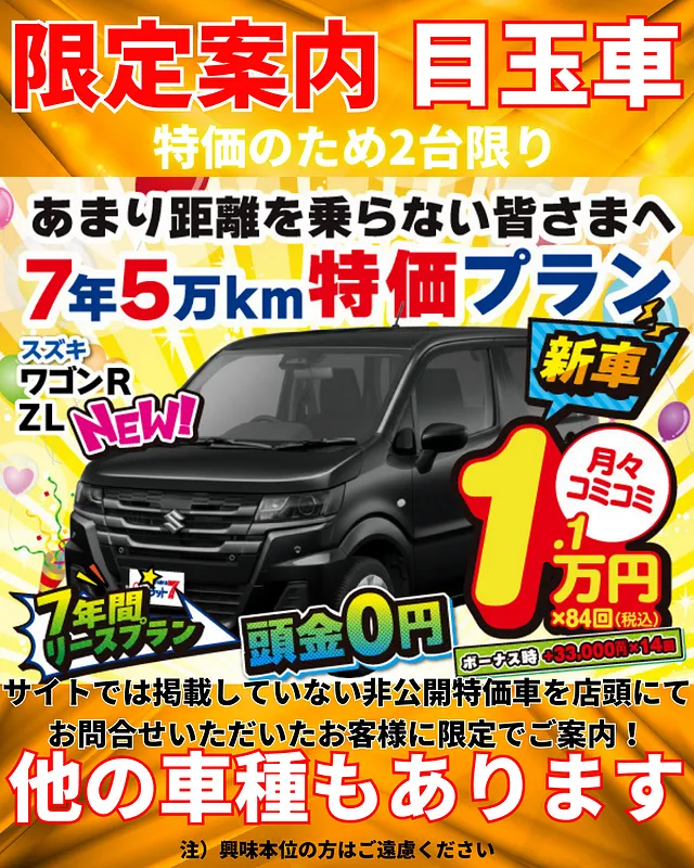 新車らくらくロングプランが登場、とにかく月々のお支払いを抑えたい方!