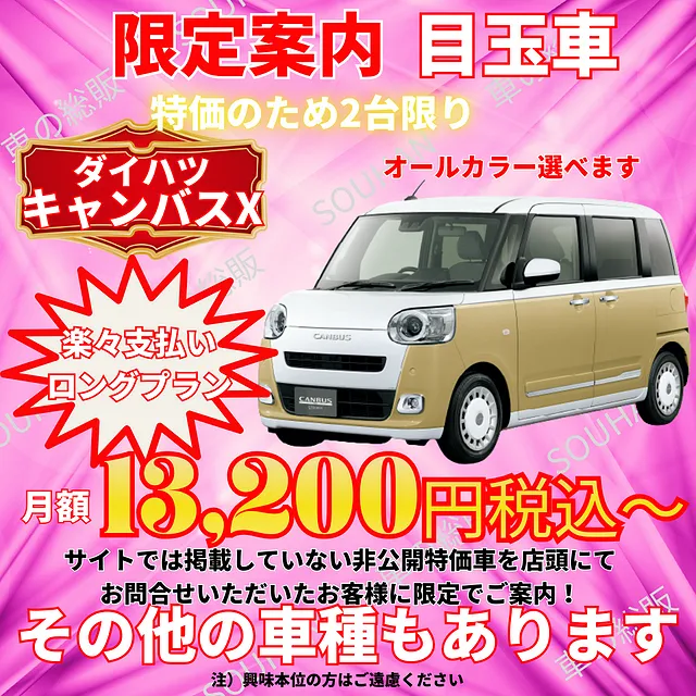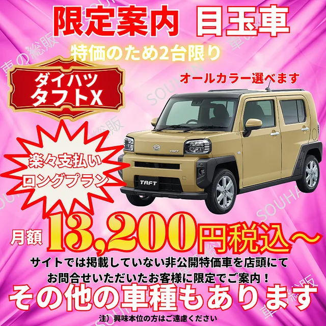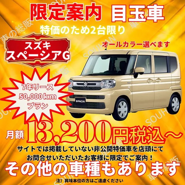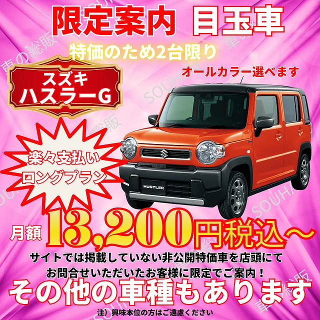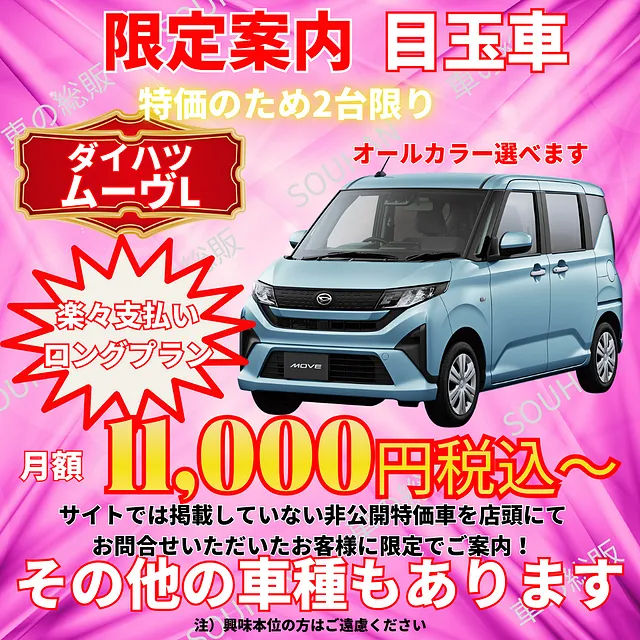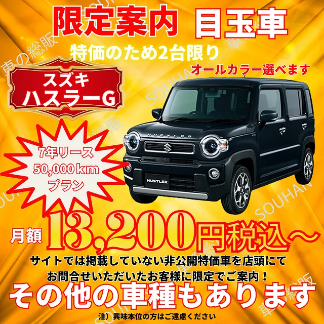 大川市 楽々ロングプラン 月々6,600円(税込)~ 新車月々払い専門店 車の総販
