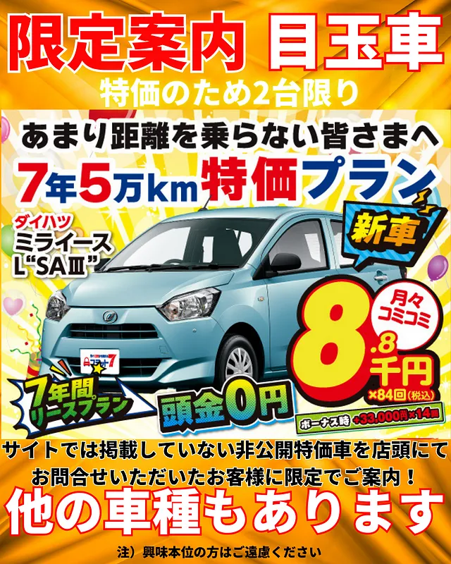 その中で7年間で走行距離が5万km以内の乗り換えが約半数あることから7年50,000kmプランが誕生しました。